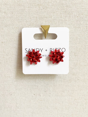 RED PUFF METALLIC KNOTTED HEADBAND
